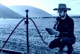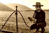 Smart farming agriculture concept. Man hands holding tablet on blurred organic farm as background. Smart irrigation technology. american farmer concept