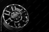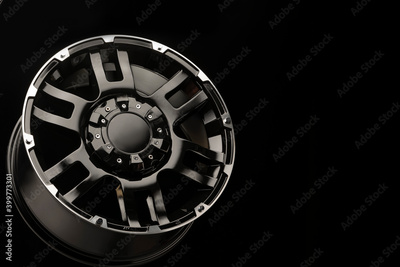 Beautiful new black alloy wheels for suv cars close up,copy space