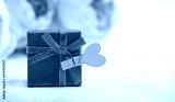 Red gift box with heart close up on abstract blurred background. Valentine's day, 14 february romantic concept. symbol of love.