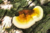 Hemlock varnish shelf or Ganoderma tsugae bracket mushroom