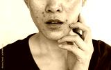 Cropped shot of worried woman having problems of acne inflamed on her face. Inflamed acne consists of swelling, redness, and pores that are deeply clogged with bacteria, oil, and dead skin cells.