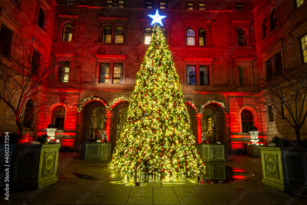 The Christmas tree in the courtyard of the Lotte New York Palace in New York City.