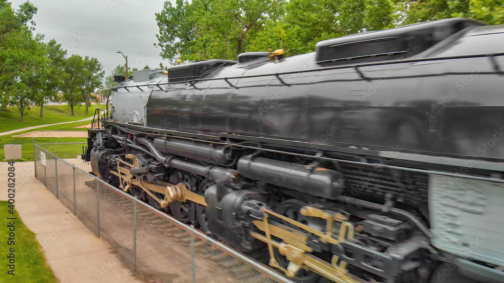 Big Boy Steam Engine 4004 aerial view in Cheyenne, Wyoming