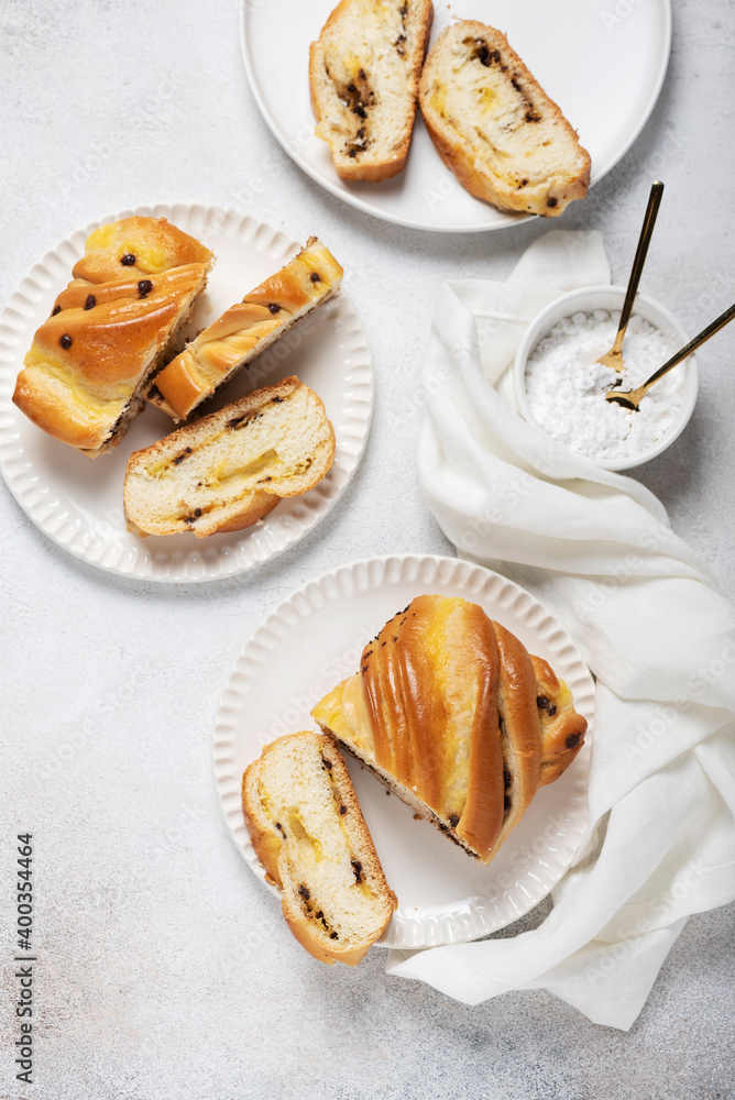 Homemade sweet cake with cream and chocolate