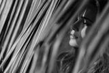 portrait of tender woman looking out of palm leaf Bali Indonesia