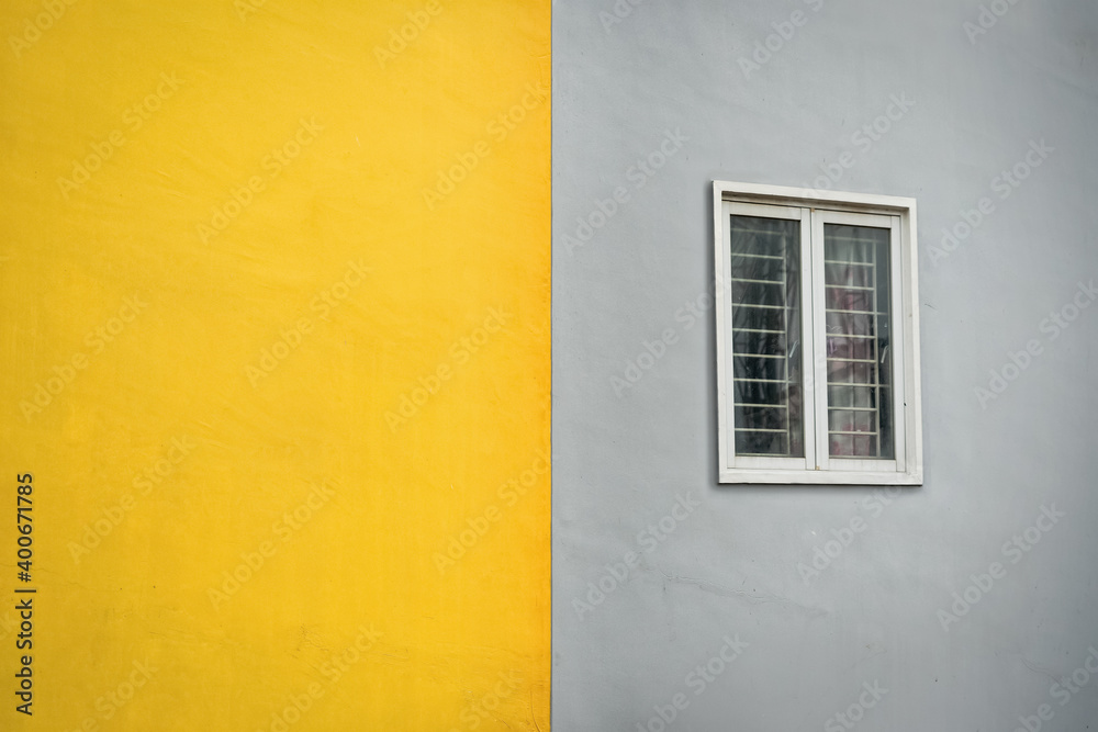 Outdoor wall yellow and gray color with window