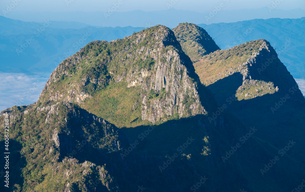 Beautiful limestone mountains view from top of Chiang Dao mountain the 3rd highest mountains of Thailand.