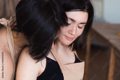 Loving couple man and woman kissing in pottery studio, dating in ceramics workshop