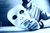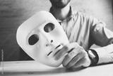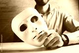 Businessman holding white mask in his hand