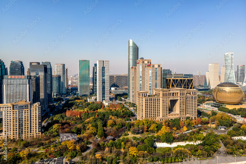 Aerial photography of the skyline of modern urban architectural landscape in Hangzhou, China..