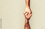 Helping hand concept and international day of peace, support. Helping hand outstretched, isolated arm, salvation. Close up help hand. Two hands, helping arm of a friend, teamwork