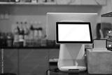 A touchscreen cashier machine with blank screen at modern coffee shop.