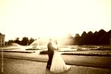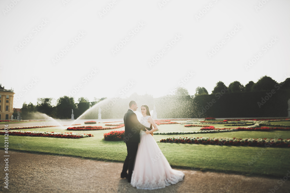 Luxury married wedding couple, bride and groom posing in old city