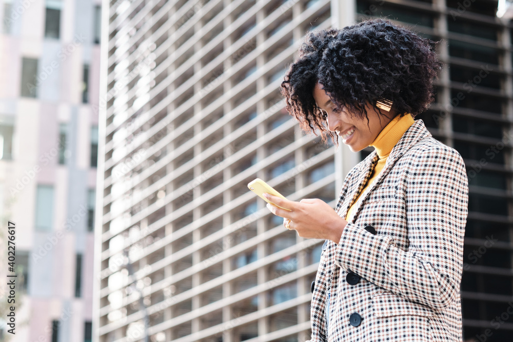 African American business woman using her phone.