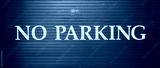 no parking sign painted on a garage door.