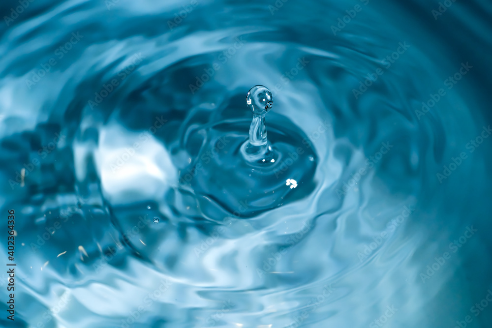 Close-up of a water drop and splash background, small impact causes big changes. Ripple, macro wave on surface of liquid