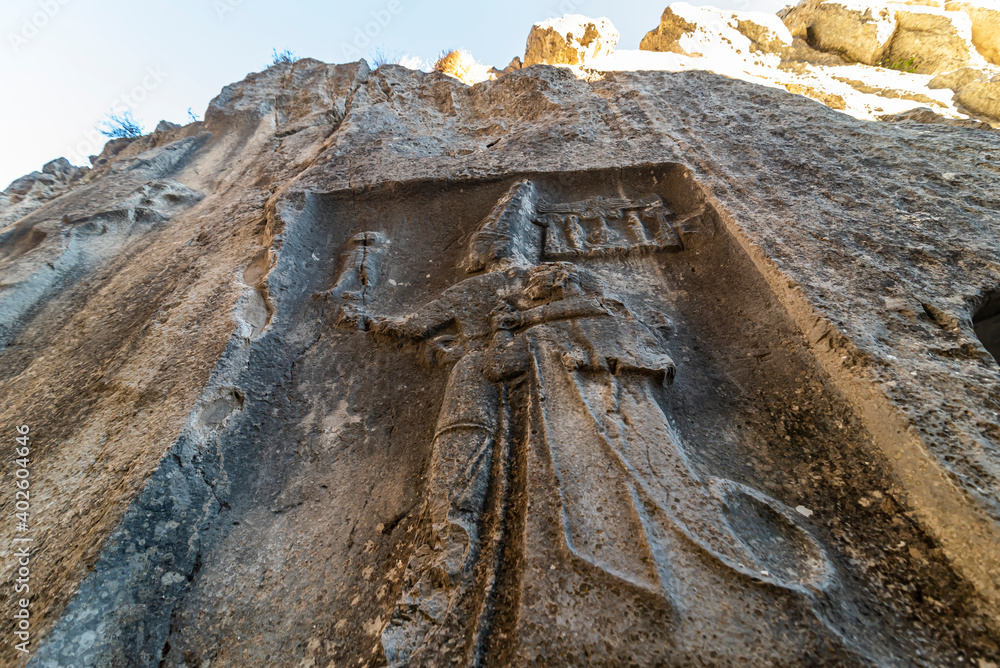 Relief of the Twelve Gods in Yazilikaya in Hattusa, ancient capital of the Hittite Civilization - Corum, Turkey