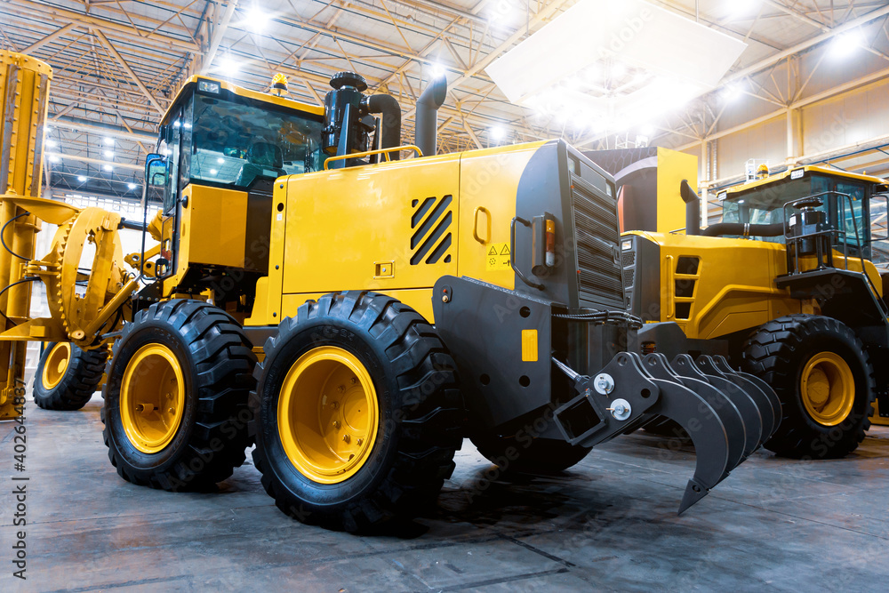 Front loader with yellow bucket