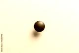 Black handle on white wooden chest of drawers. Minimalism. Minimal concept. Close-up. The texture of natural wood