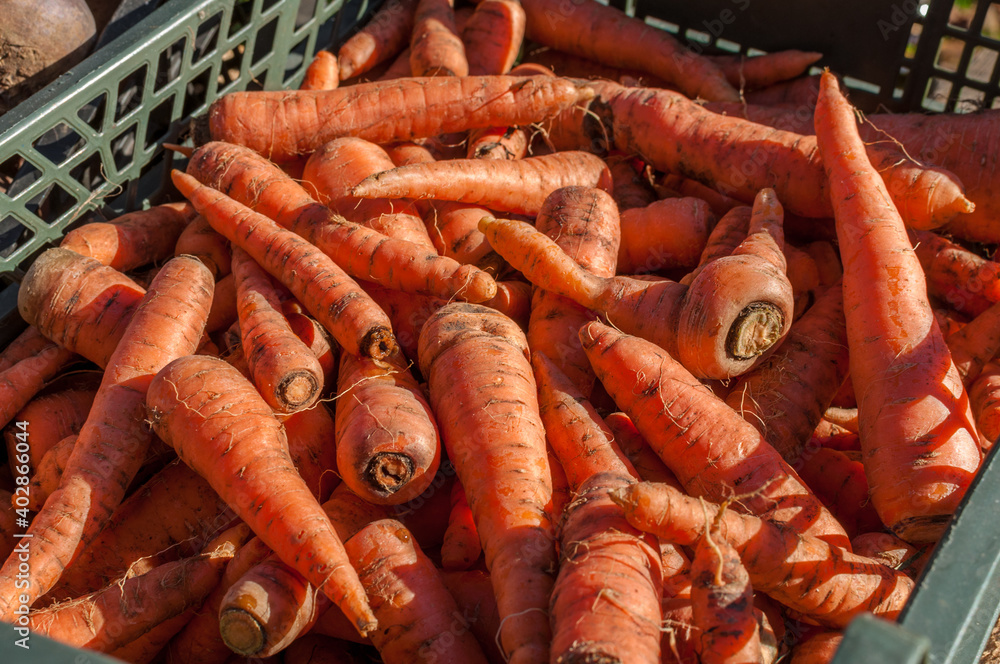 Zbiór marchewek w skrzynce na bazarze warzywnym