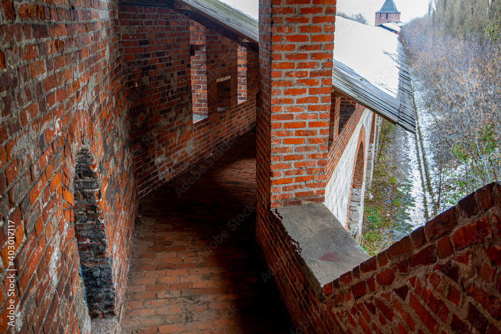 Inside of the wall in Nizhny Novgorod Kremlin. Russia. 16th century built