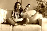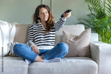 Beautiful young woman relaxing at home watching tv