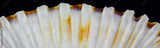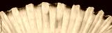 closeup of white inside of sea bivalve scallop shell with radiating ridge spine pattern isolated on black background. A seashell found on ocean sand beach.
