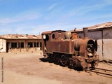 Vieille locomotive rouillée dans le village fantôme de de Humberstone au Chili