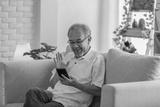 Happiness elderly asian man sitting on sofa and using mobile phone VDO Conference online meeting with family and smile at home,Senior lifestyle at home concept