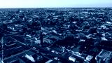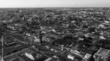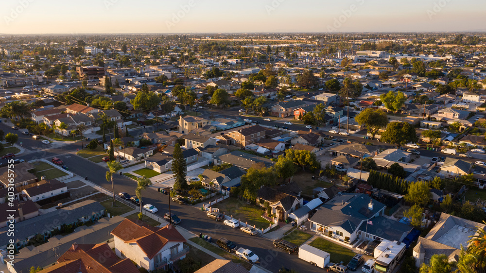 Sunset aerial view of a residential district in Westminster, California, USA.