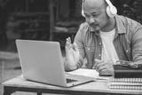 Remote working online and business meeting at Home office Concept. Businessman work via laptop. Asian senior entrepreneurs watching webinars and talking during meeting video conferences call with team