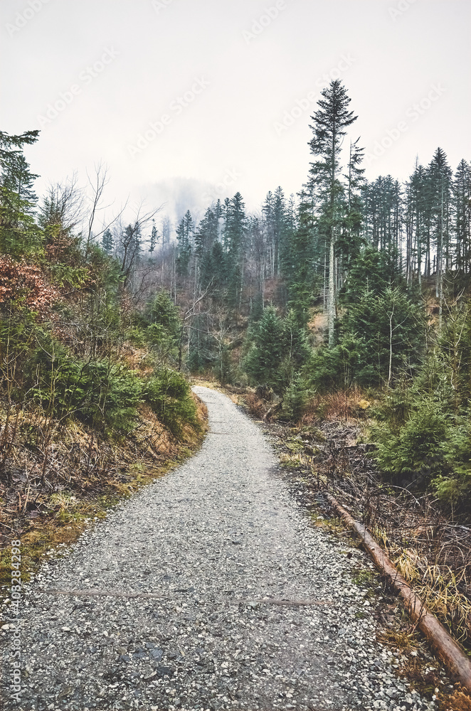 Tatra mountains landscape on a rainy day, color toning applied, Poland.