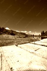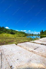 wooden bridge over the lake (Wiegensee, Vorarlberg, Austria)