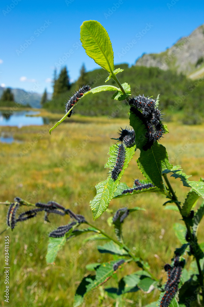 Pupae of mourning cloak (Nymphalis antiopa)
