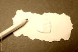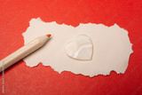 Torn paper, color pencils and heart shapes as love conception