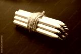 Bundle of colored pencils wrapped with linen string