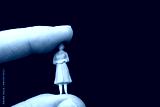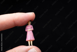 miniature figurines of a woman sitting betwee the finger of a hand