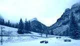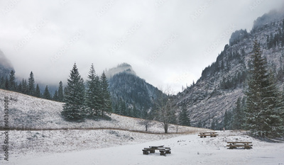 Winter mountain landscape of Koscieliska Valley, color toning applied, Tatra National Park, Poland.