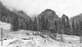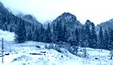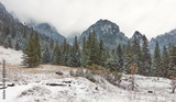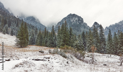 Winter mountain landscape on a snowy day.