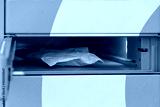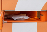 Parcel in open box of automated self service post terminal and parcel storage machine outdoors