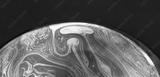 Closed up colourful wave and patterns with rainbow effects in bubbles isolated on black background.