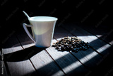 Morning light coffee cups and coffee beans