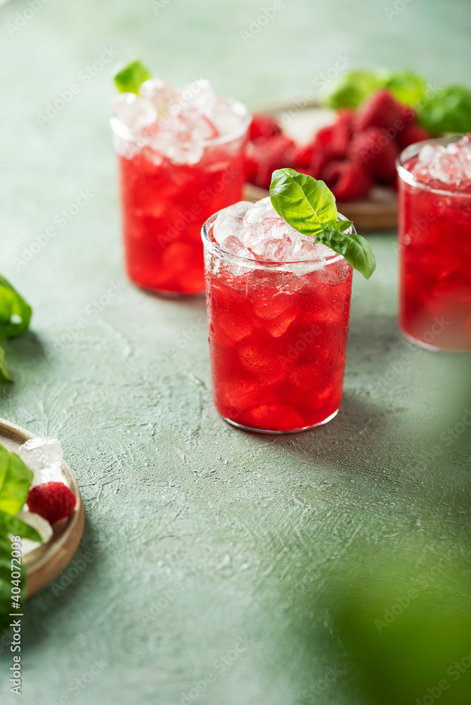 Fresh raspberry cocktail with basil