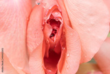 closeup of erotic pink rose flowers with water drops