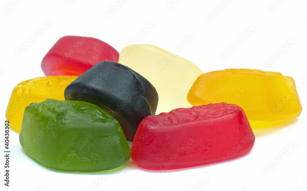 A pile of wine gums on a white background