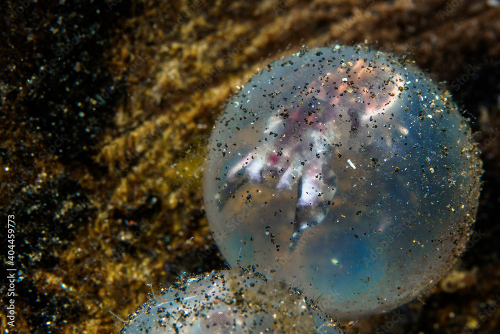 Baby flamboyant cuttle fish being born hatching from egg - Metasepia pfefferi