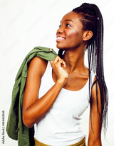 young pretty african-american girl posing cheerful emotional on white background isolated, lifestyle people concept close up