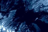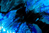 Abstract painting drawn by fluid acrylic technique. Picture with blue, green, emerald, colorful water stains, gradients on dark background. Imitation of northern lights on canvas. Modern art concept.