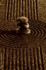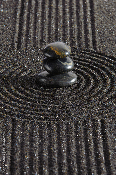 Japanischer Garten mit Sand und Stein in Yin und yang