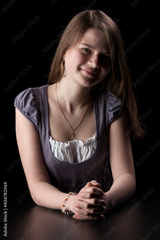 Portrait of young girl with long brown hair